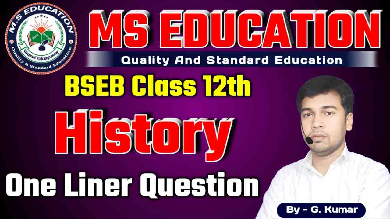 Bihar Board Class 12th Arts History Study Material :- MS Education में स्वागत है आप सभी विद्यार्थियों के लिए हमारे शिक्षण संस्थान MS Education के द्वारा Bihar Board Class 12th History का Chapter Wise One Liner Question दिया गया है जो आप सभी के लिए बहुत महत्वपूर्ण है जिसे आप पढ़ कर BSEB 12th Board Exam में अच्छा Marks ला सकते हैं|