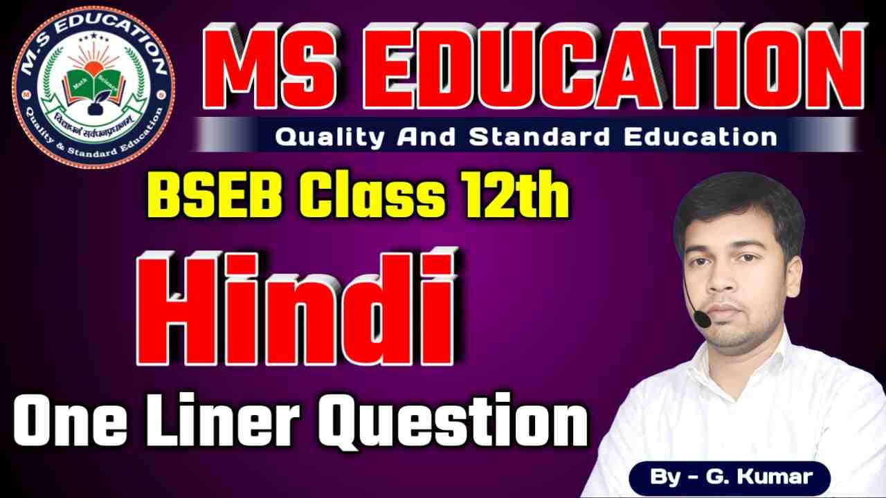 Bihar Board Class 12th Hindi One Liner Question :- MS Education में स्वागत है आप सभी विद्यार्थियों के लिए हमारे शिक्षण संस्थान MS Education के द्वारा Bihar Board Class 12th Hindi का Chapter Wise One Liner Question दिया गया है जो आप सभी के लिए बहुत महत्वपूर्ण है जिसे आप पढ़ कर BSEB 12th Board Exam में अच्छा Marks ला सकते हैं|
