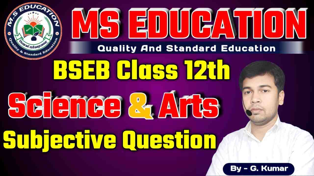 Bihar Board Class 12th Subjective Question :- सभी विद्यार्थियों का हमारे शिक्षण संस्थान MS Education में स्वागत है आप सभी विद्यार्थियों के लिए हमारे शिक्षण संस्थान MS Education के द्वारा Bihar Board Class 12th के सभी विषयों का Subjective Question Answer दिया गया है। जो आप सभी के लिए बहुत महत्वपूर्ण है जिसे आप पढ़ कर BSEB 12th Board Exam में अच्छा Marks ला सकते हैं।