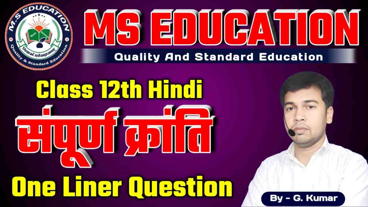 Class 12th Hindi सम्पूर्ण क्रांति One Liner Question || Class 12th Hindi Complete Revolution One Liner Question